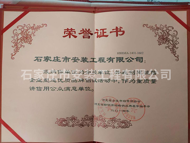 重質(zhì)量講信用公眾滿意單位榮譽證書